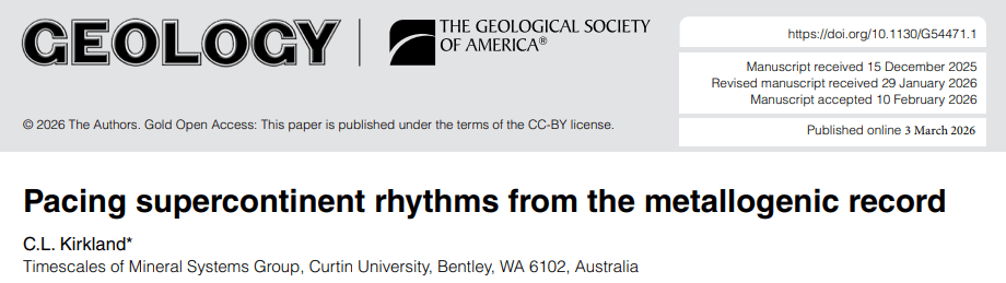 Kirkland, C. L. (2026). Pacing supercontinent rhythms from the metallogenic record. Geology.