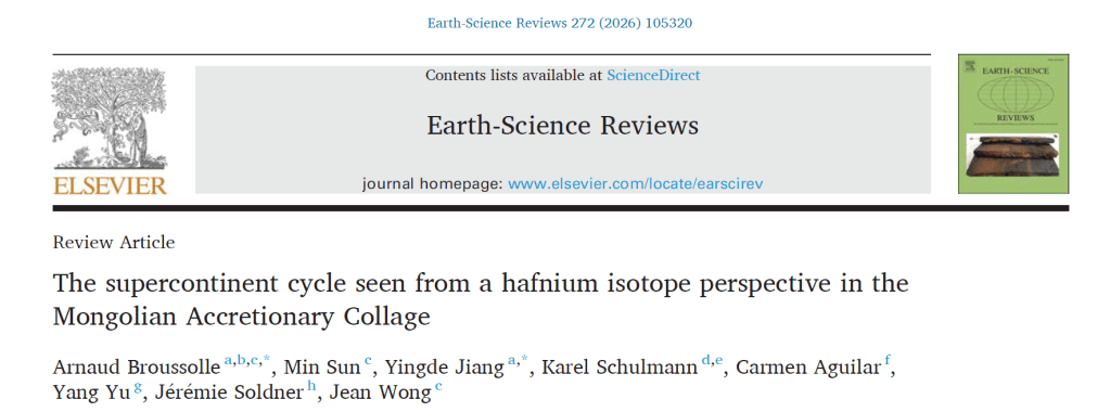 Broussolle, A., Sun, M., Jiang, Y., Schulmann, K., Aguilar, C., Yu, Y., … & Wong, J. (2026). The supercontinent cycle seen from a hafnium isotope perspective in the Mongolian Accretionary Collage. Earth-Science Reviews, 272, 105320.