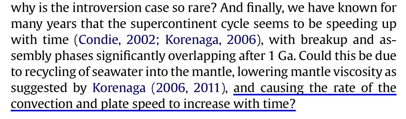 Acceleration of the supercontinent cycle is not a new idea from the millennial, nor my idea. At the dawn of the supercontinent cycle, researchers already hypothesised the acceleration based on a very trivial observation of the timing of supercontinents occurrences in the past (Pangea, at -300 Myr, Gondwana, at -600 Myr, Rodinia, at -1,000 Myr and Columbia, at -1,800 Myr). These four supercontinents already suggest that the repetition of assemblies could fasten towards modern times. However, it was a very speculative idea, as the evidence of all supercontinents were still to be shown and published. In 2025, this question is far from being resolved as new parameters have now influenced our understanding of Plate tectonics and the supercontinent cycle. How does these new researches help us to solve this question? Let’s try to investigate it through few recent papers.